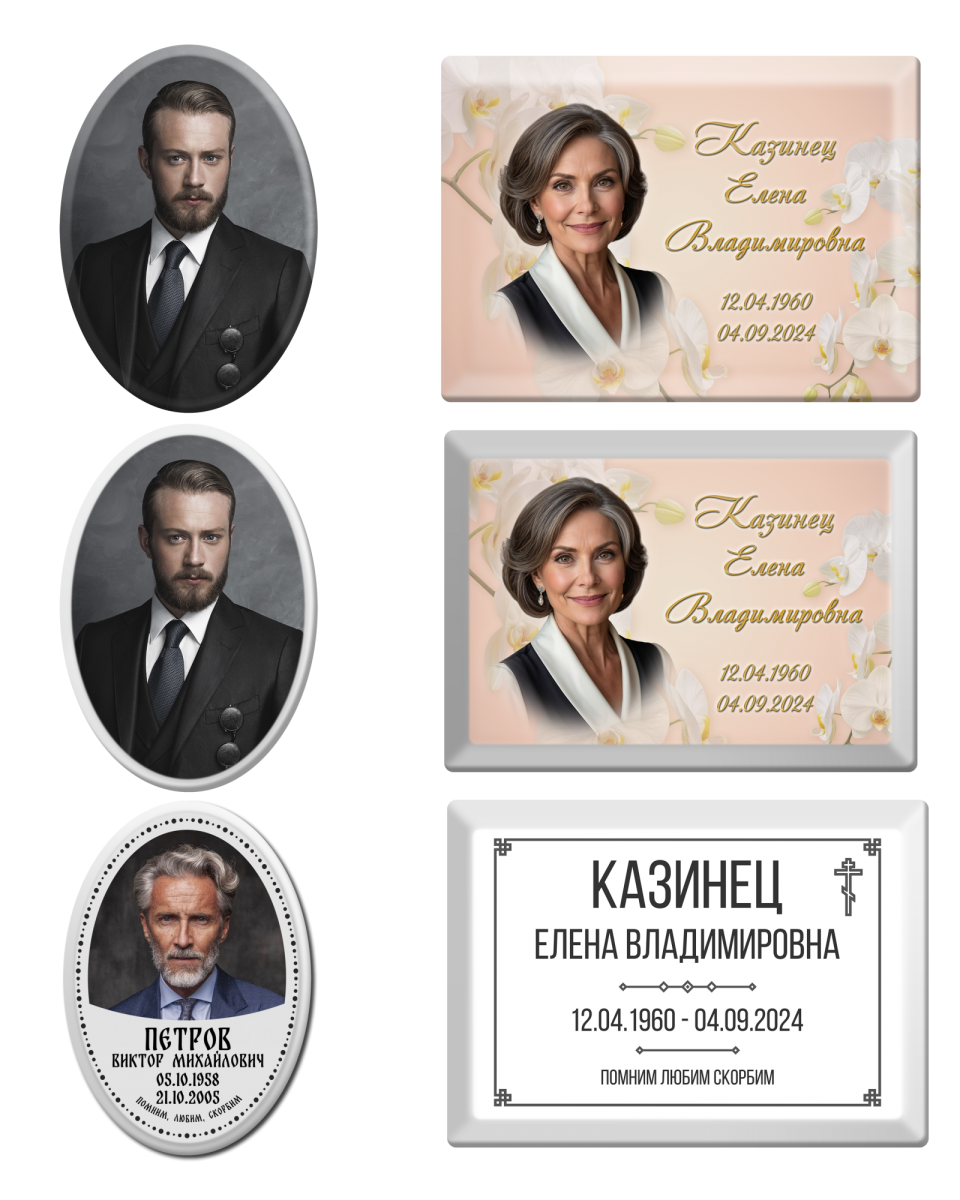 Медальоны на металлокерамике являются наиболее бюджетным вариантом, поэтому идеально подходят для установки на сельских кладбищах.
